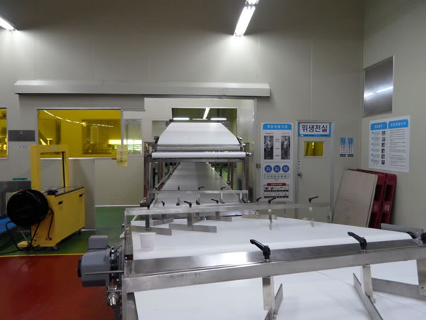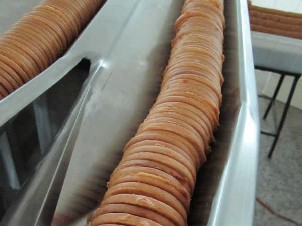 Después de la sandwichadora, las galletas rellenas pasan directamente al túnel de enfriamiento a través de un flujo partido y, finalmente serán empaquetadas en la empaquetadora. En el caso de que queramos recubrir las galletas con chocolate, las galletas primero pasan por la bañadora de chocolate, después por el túnel de enfriamiento y, finalmente, la máquina de empaquetado.